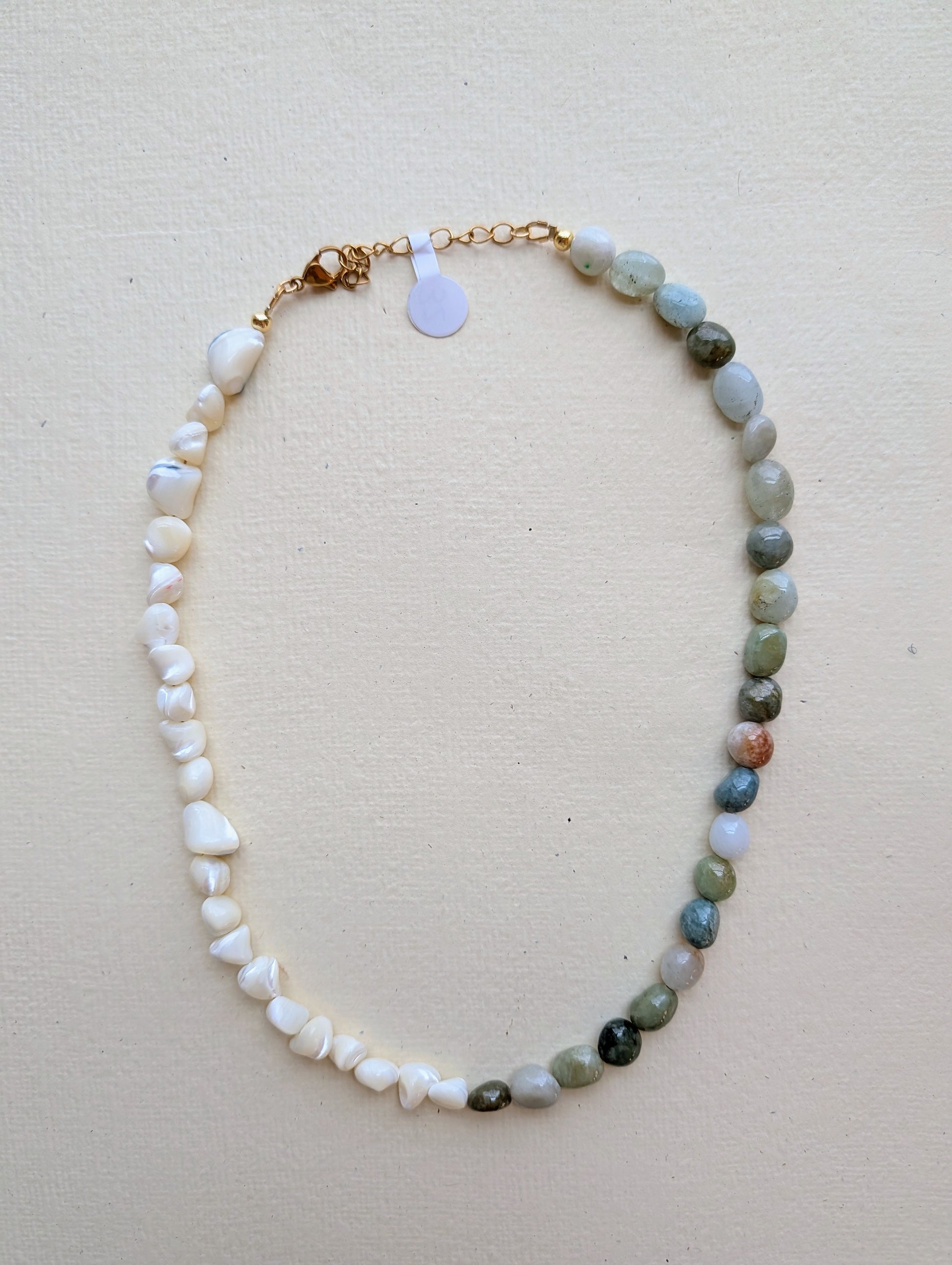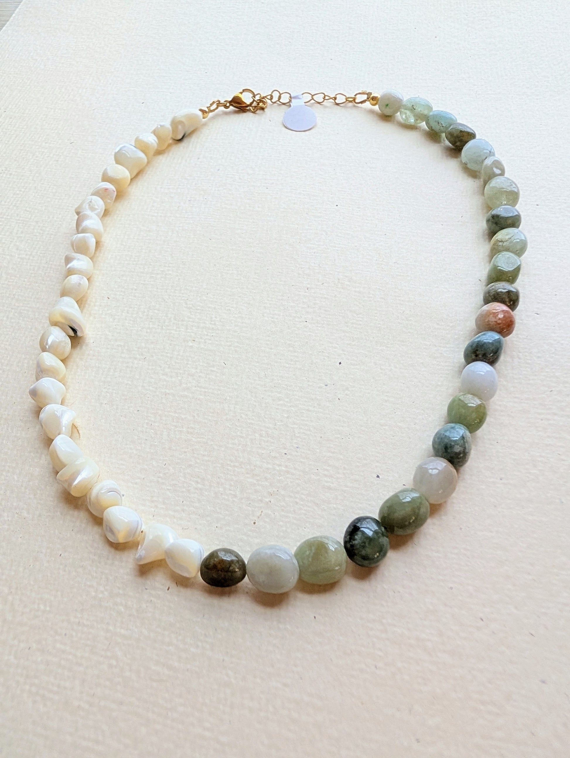 A soft, elegant layer combining the organic luster of freshwater pearls with the calming blue‑green tones of natural aventurine. Mini 11 brings a gentle, grounded brightness to your coastal stack, offering a blend of classic and earthy charm. Crafted with durable, gold‑plated stainless steel components, it’s waterproof, tarnish‑resistant, and designed for effortless everyday wear