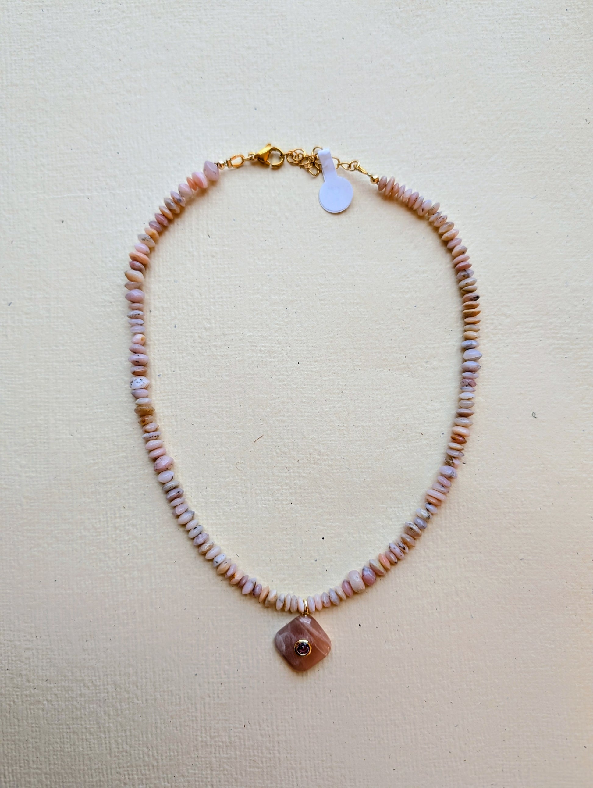 A soft, grounded layer made from natural rhodonite — a pink gemstone marked with subtle black patterns that give each bead its own character. Finished with a pink bezel‑set gemstone pendant, Mini 4 adds a warm, feminine touch to any coastal‑inspired stack. Crafted with durable, gold‑plated stainless steel components, it’s waterproof, tarnish‑resistant, and designed for effortless everyday wear